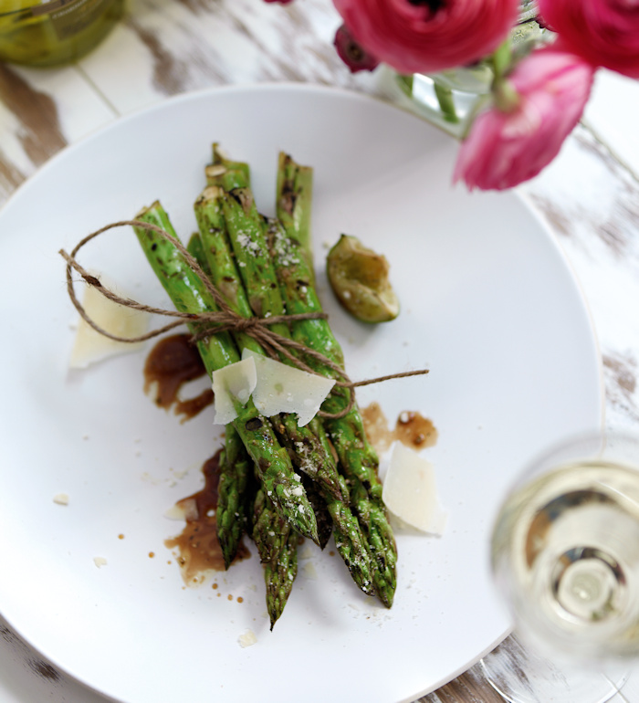 Remove asparagus once cooked through, lightly cover with shavings of Parmigianino and drizzle remaining lime, oil & balsamic, season with salt & black pepper to taste.